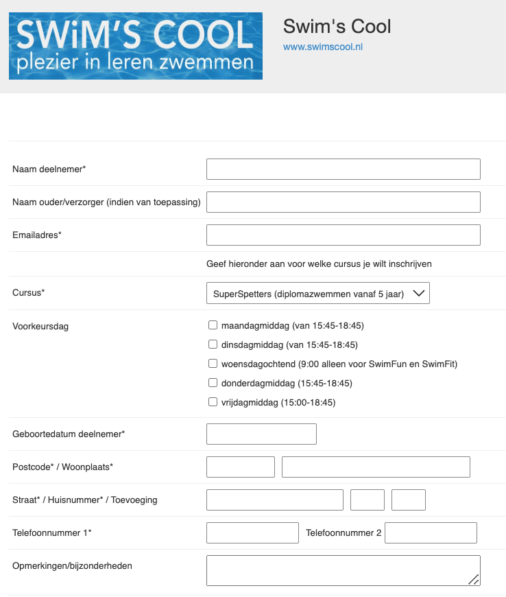 Wat leuk dat je je wilt inschrijven bij Swim’sCool, welkom!